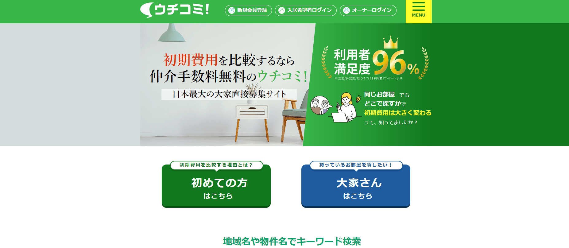 引用元:ウチコミ公式HP ウチコミは、大家と家探しをしている人のマッチングサービスです。ウチコミを利用するメリットは、以下のようなものがあります。