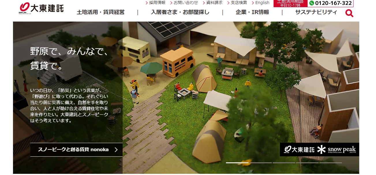 大東建託はアパート経営に特化しており、サポートが充実しているハウスメーカーです。対応エリアは全国47都道府県で、どのエリアでも相談を受け付けています。また、木造・ツーバイフォー構造から鉄筋コンクリート造など、幅広い構造に対応しています。 そして、大東建託では土地診断サービスや専門家によるコンサルティングサービスもあり、サポート体制は充実していると言えるでしょう。修繕費の保証期間が、30〜35年というのも嬉しいポイントです。 大東建託公式HP:https://www.kentaku.co.jp 所在地:東京都港区港南二丁目16番1号・品川イーストワンタワー 問い合わせ:03-6718-9111
